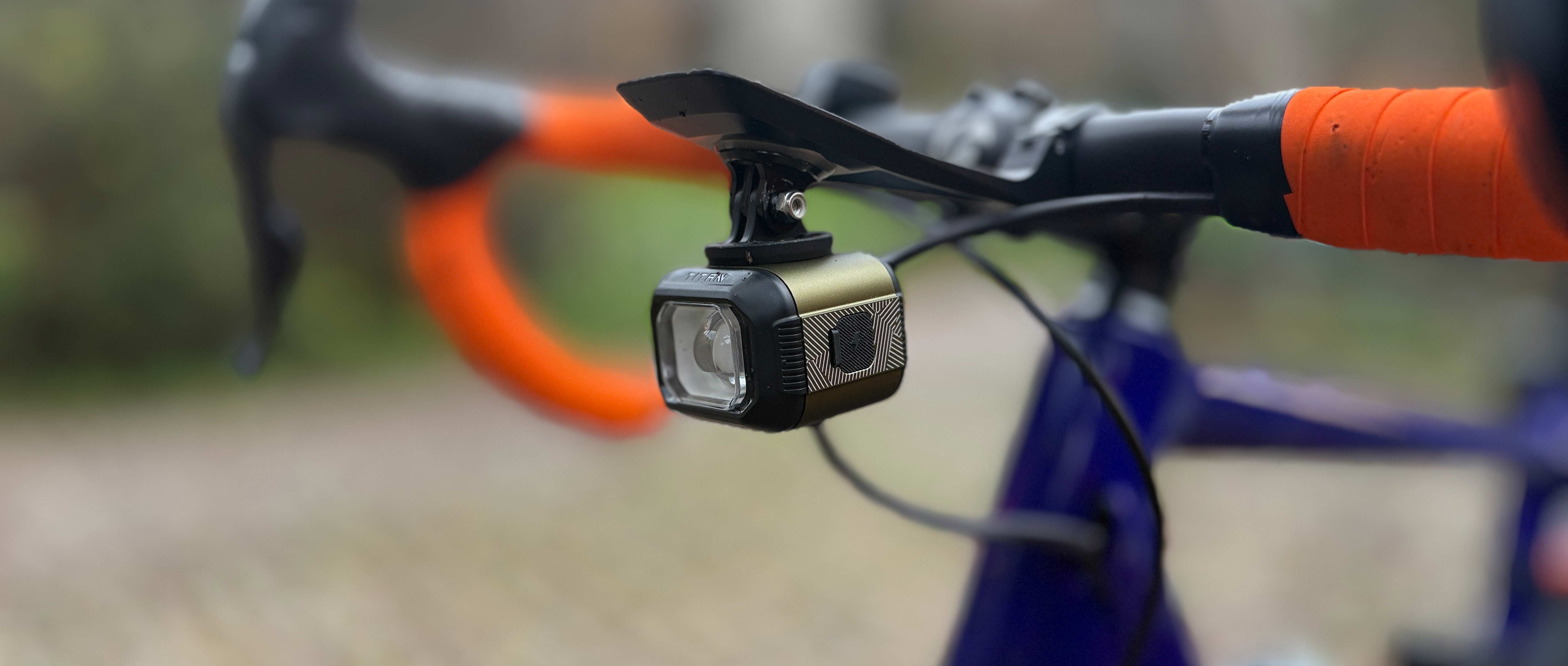 The design of the Titan Max 1700 differs significantly from the other two lights in both its form factor, which is boxy, rather than cylindrical and the fact that it offers a wireless charging facility (to back-up the now ubiquitous USB C charging option). The light can be mounted both on top and below the handlebars by simply unscrewing two 1.5mm screws and switching the mounting plate from the top to the bottom (or vice versa). Despite the fact the Titan Max 1700 is significantly cheaper than the other two lights featured, it came with an impressively comprehensive set of accessories – a plastic ‘out-front’ combined computer/bike light mount (complete with adaptors for both Wahoo & Garmin computers), a set of 1.5/2/3mm Allen keys for setting up the light/computer mount, a quick-release GoPro light mount, adaptors for different handlebar diameters and a wireless remote control (complete with coin cell battery). The fit and the function of the included out front mount weren’t as good as it could have been. Although the Titan Max 1700 was supplied with a variety of rubber adaptors for different diameter handlebars, none of them offered a snug enough fit to prevent the mount from rotating around the handlebars. The mount is also surprisingly flexible with noticeable movement present once a computer and the light were fitted. In the end, we erred on the side of caution and used an existing metal out front mount, rather than risking Titan’s own.