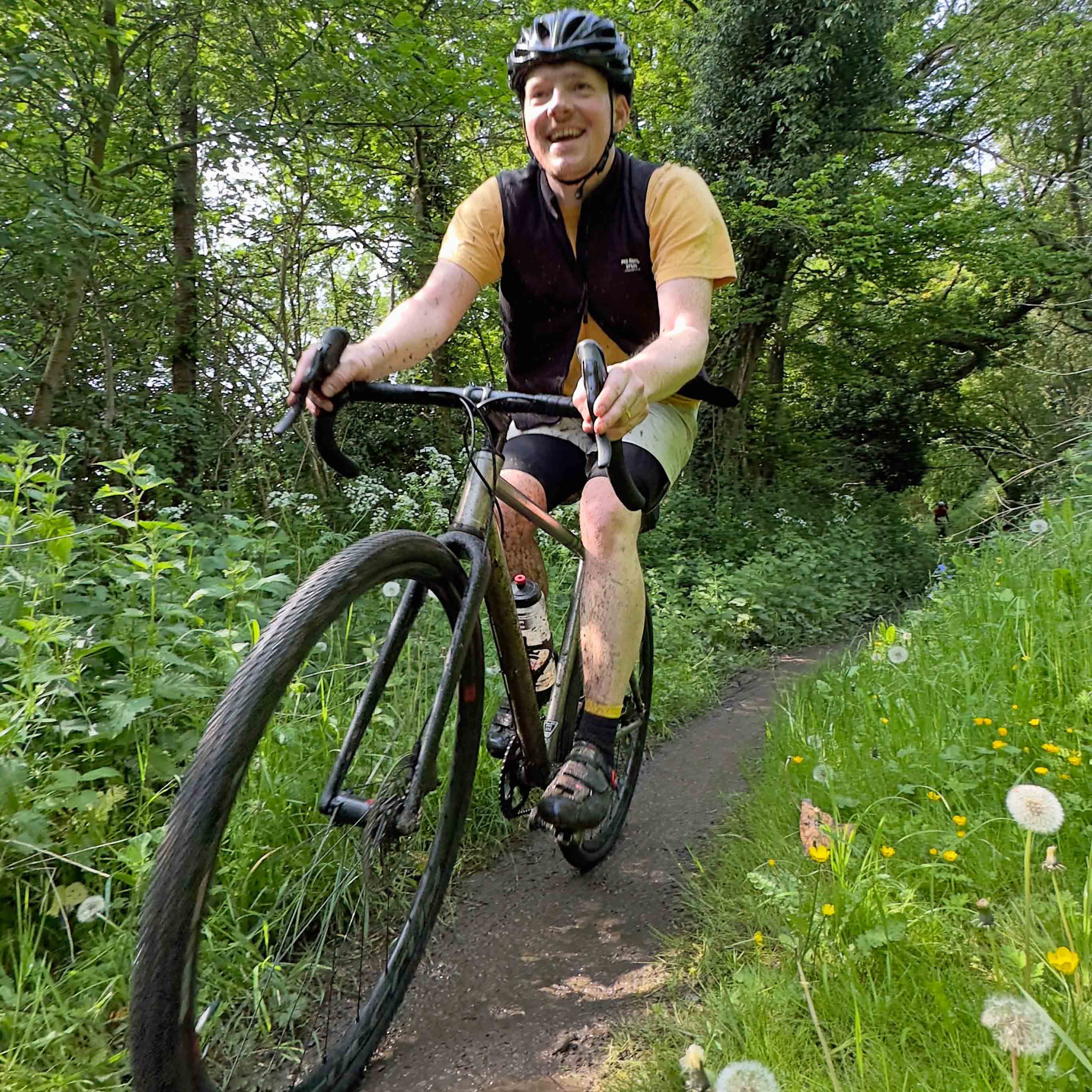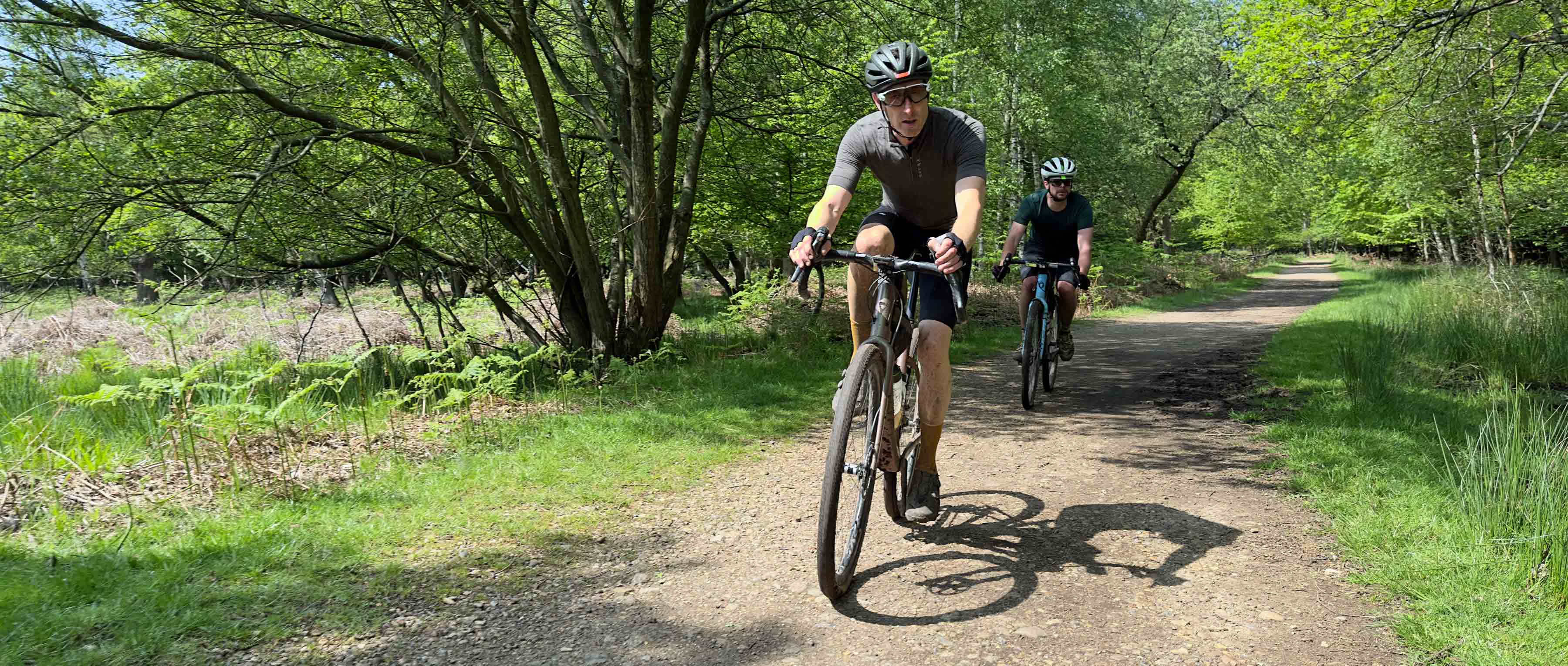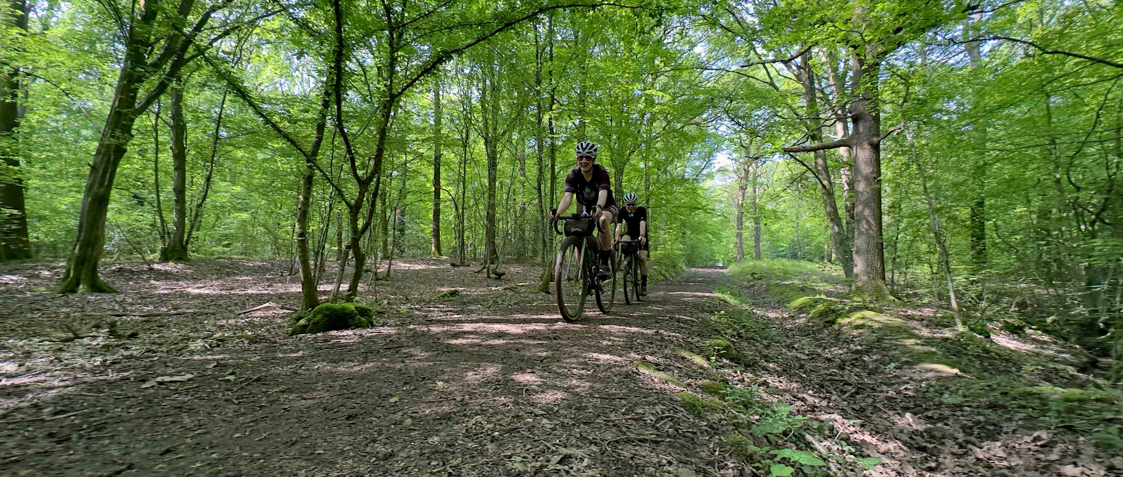 “Do you think I’m just jinxed with tubeless tyres?” asked Ian with a combination of disappointment and frustration apparent in his voice. We were deep in the middle of Hoddesdon Park Wood, a beautiful broadleaf forest with a vehicle-width gravel trail running through the centre of it. The dense foliage meant there were some patches where the sunlight hadn’t penetrated and the clayey soil, high water table and popularity of horse riding in the area meant some of the trails were impressively ‘clarty’. As we stopped to try and encourage (unsuccessfully) the air to stay inside Ian’s rear tyre, we were part way up a short, slithery climb. We had just descended at high speed, with a mix of bravado and foolhardiness known only to mountain bike riders transplanted onto gravel bikes for a day. With enough speed (and a large dollop of good luck) it was possible to carve a route straight through the middle of the worst of the mud, but the high-pitched giggles and occasional yelps that were being carried through the forest behind us, made us realise that although not everyone was as successful as we had been at navigating the swampy descent, they all sounded like they were having a fun time anyway.