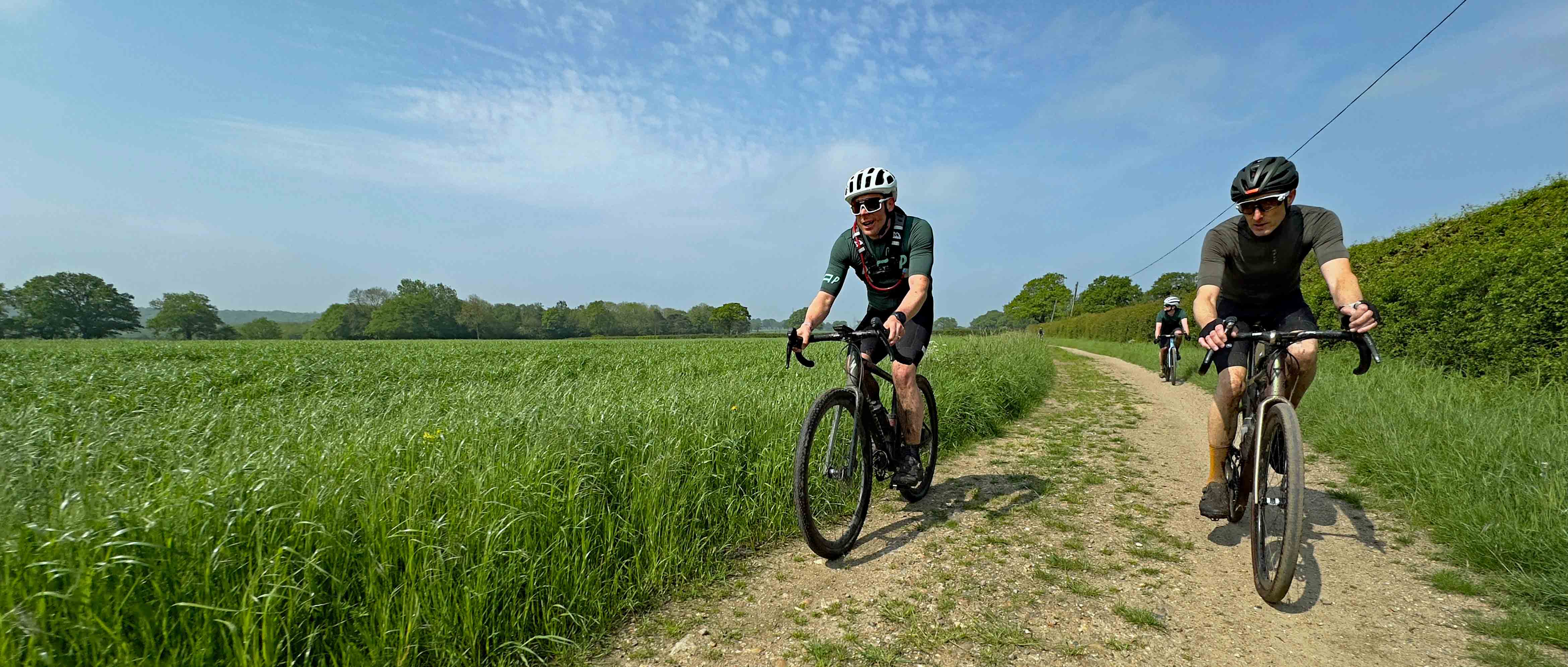 Somewhere beyond km 30, the Diproses transported us into a different world. An ancient sunken ‘holloway’ trail, lined with oak, dappled sunlight casting kaleidoscopic patterns on the firm gravel surface. In an instant, speeds rocketed, flinty pebbles ricocheted off tubeless tyres and wide grins spread across the faces of the riders. It was sections of trail like this that made the six-hour drive down from the Gravel Union UK office worthwhile. It was also the point where Ian got the first puncture of the day. Yin and Yang.
