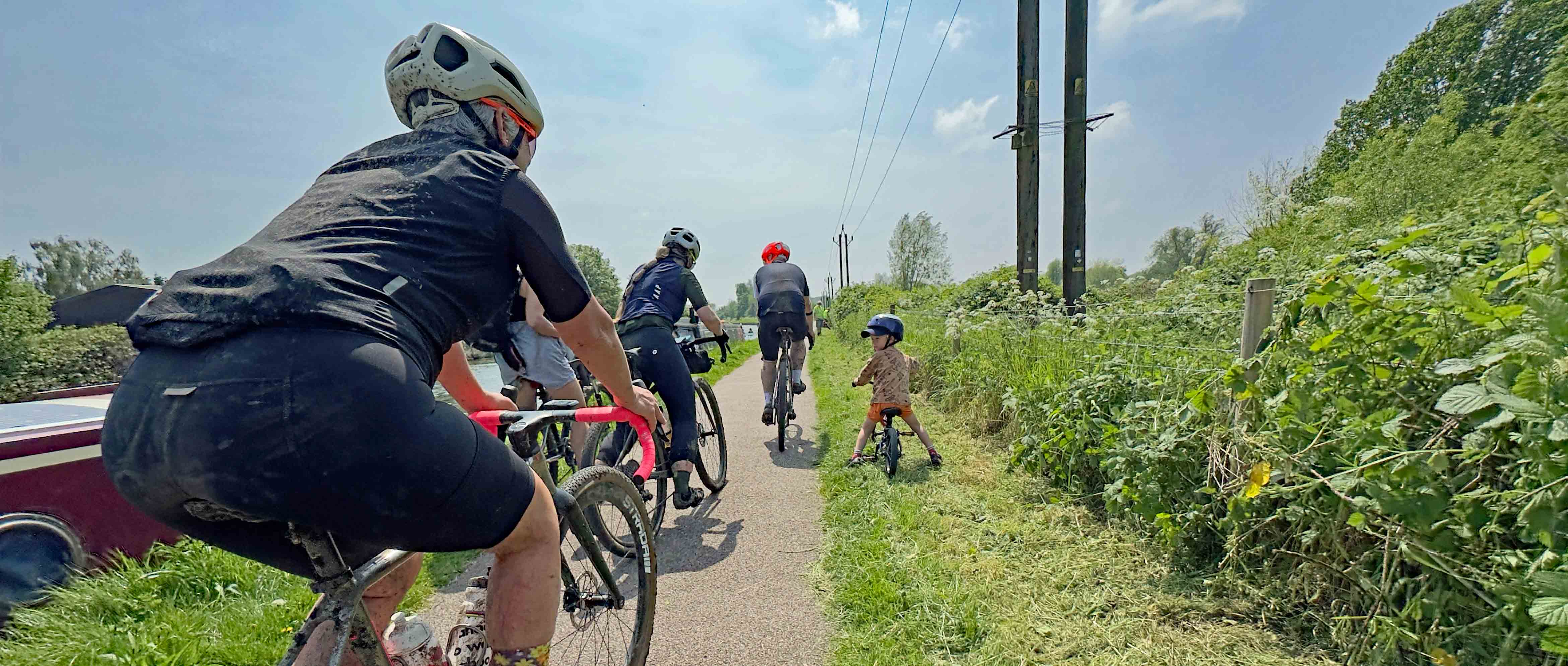 A good chunk of the afternoon’s riding was alongside the River Lea, which at this point on its course is essentially a canal. As it was a (finally!) sunny Saturday afternoon, there were plenty of people out enjoying time on or alongside the water. Stand Up Paddleboarders. Canal boat fans. Kayakers. Dog Walkers. Even a couple of horse riders. But the highlight was a family out for a leisurely ride along the gravelly tow path. They parted ways to let the group I was riding in pass, parents on one side, small child on the other. As we passed, the small child seemed to smile and look on in admiration and we probably all felt like cycling superheroes for a fraction of a second. It was only afterwards that I realised the rider in front of me was Petra Wiltshire, former World Masters downhill MTB champion. I’m not sure whether the small child realised they were genuinely looking in admiration at a cycling superhero?
