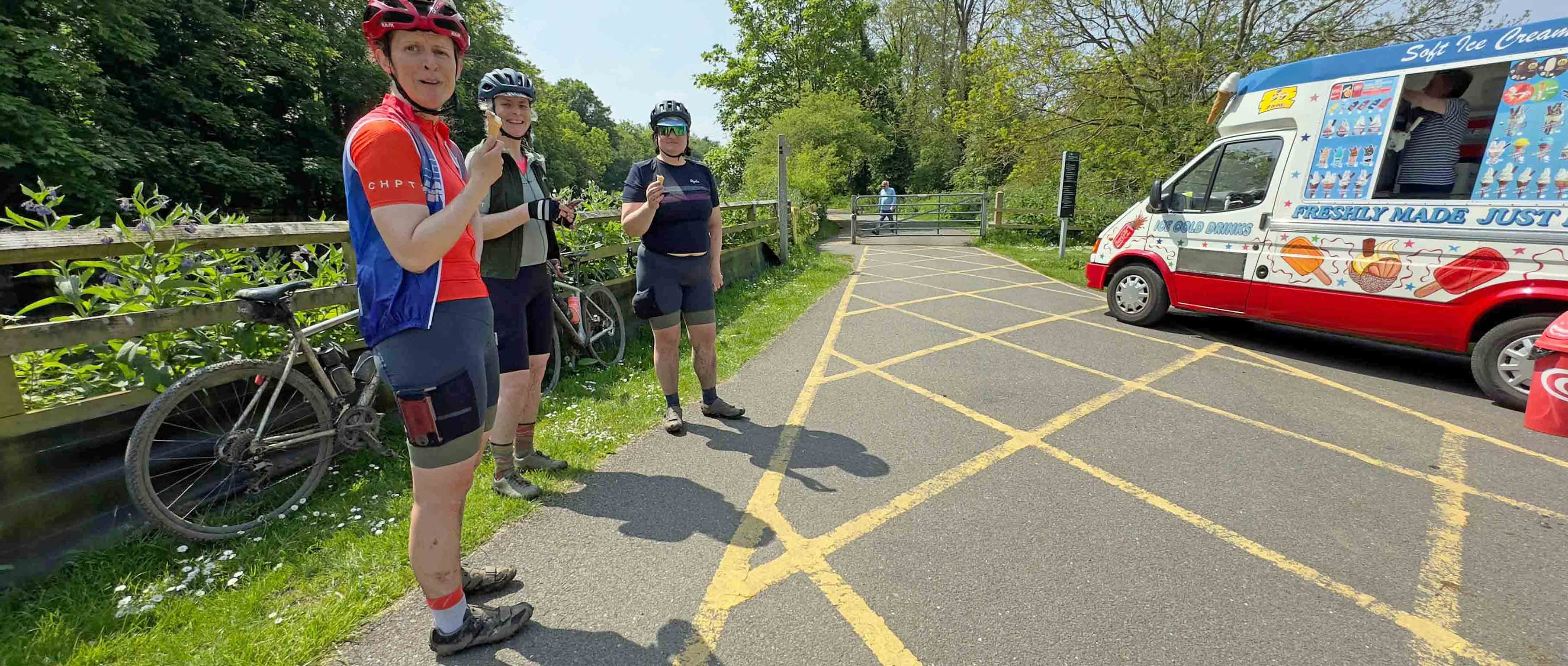 Looking back at my image stash now, I suspect that I must have been suffering from sunshine-induced madness as I have evidence that we rode straight past an open ice-cream van at one point. Luckily, we were rewarded soon after with some fantastically fast and flowy woodland singletrack, courtesy of the trails of Epping Forest. We’ll gloss over the Velcro/Teflon-like tendancies of the steep, rooty climb leading up into the forest mind you. No grip when you needed it most and like being sucked into a bog when just when your legs were screaming their loudest.