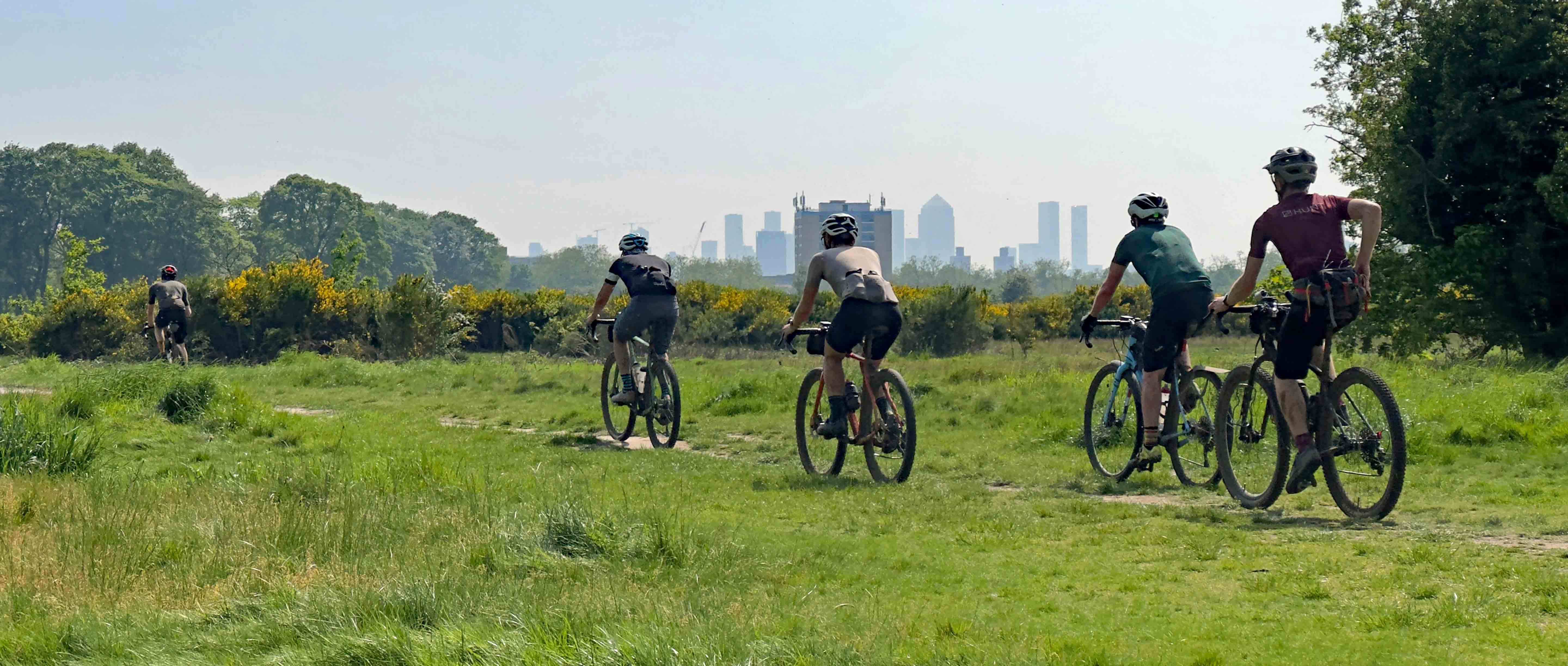 If I was just going to use one image to sum of the characteristics of NLD it would be this one. A narrow strip of hardpacked singletrack, crossing the grassy Wanstead Flats with the high-rise developments Canary Wharf and the City of London in the background. The hinterlands of the UK’s capital city would not make an obvious place to come and search for gravel nirvana, but yet again the Diproses came up trumps and the route of the 2024 NLD was a triumph.