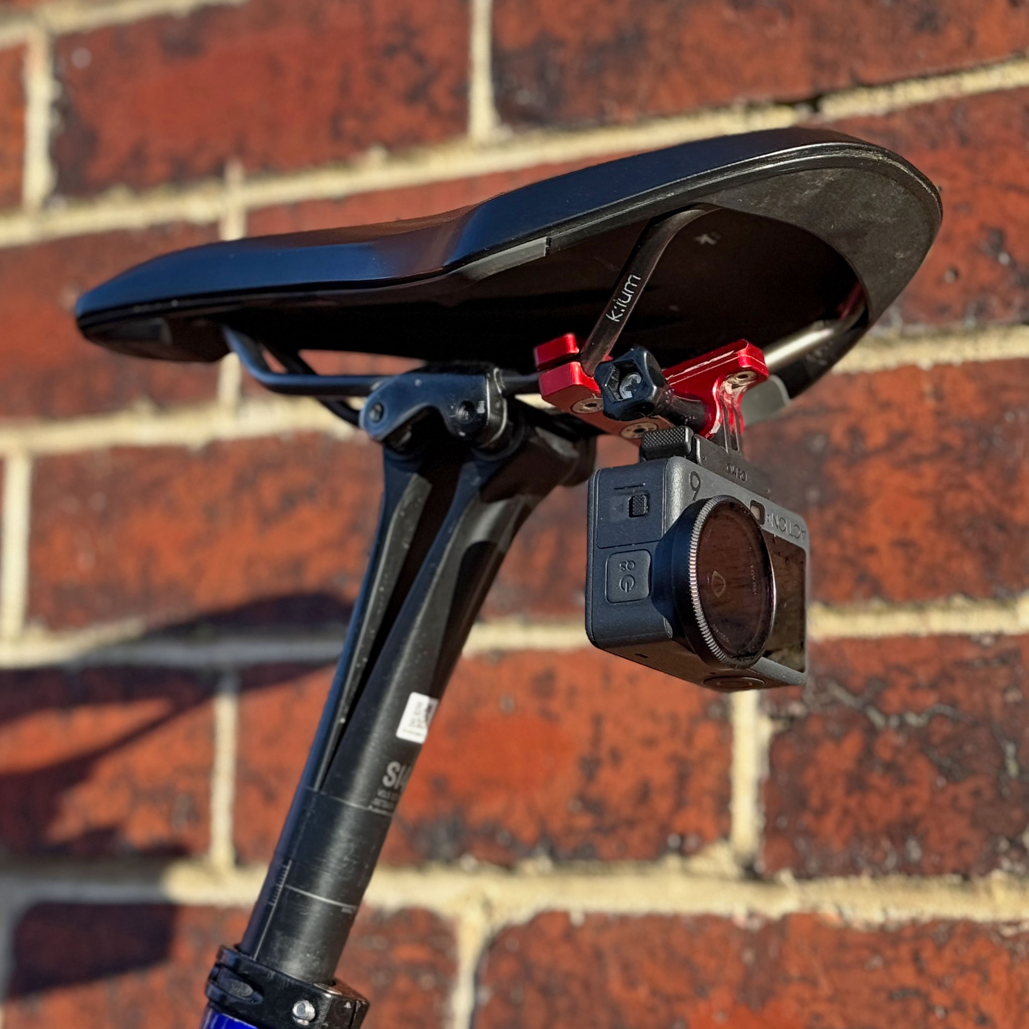- Seat rail mount – this gives a really great point-of-view for filming riders behind you, but it only works if you don’t have a seatpack fitted (which I do)