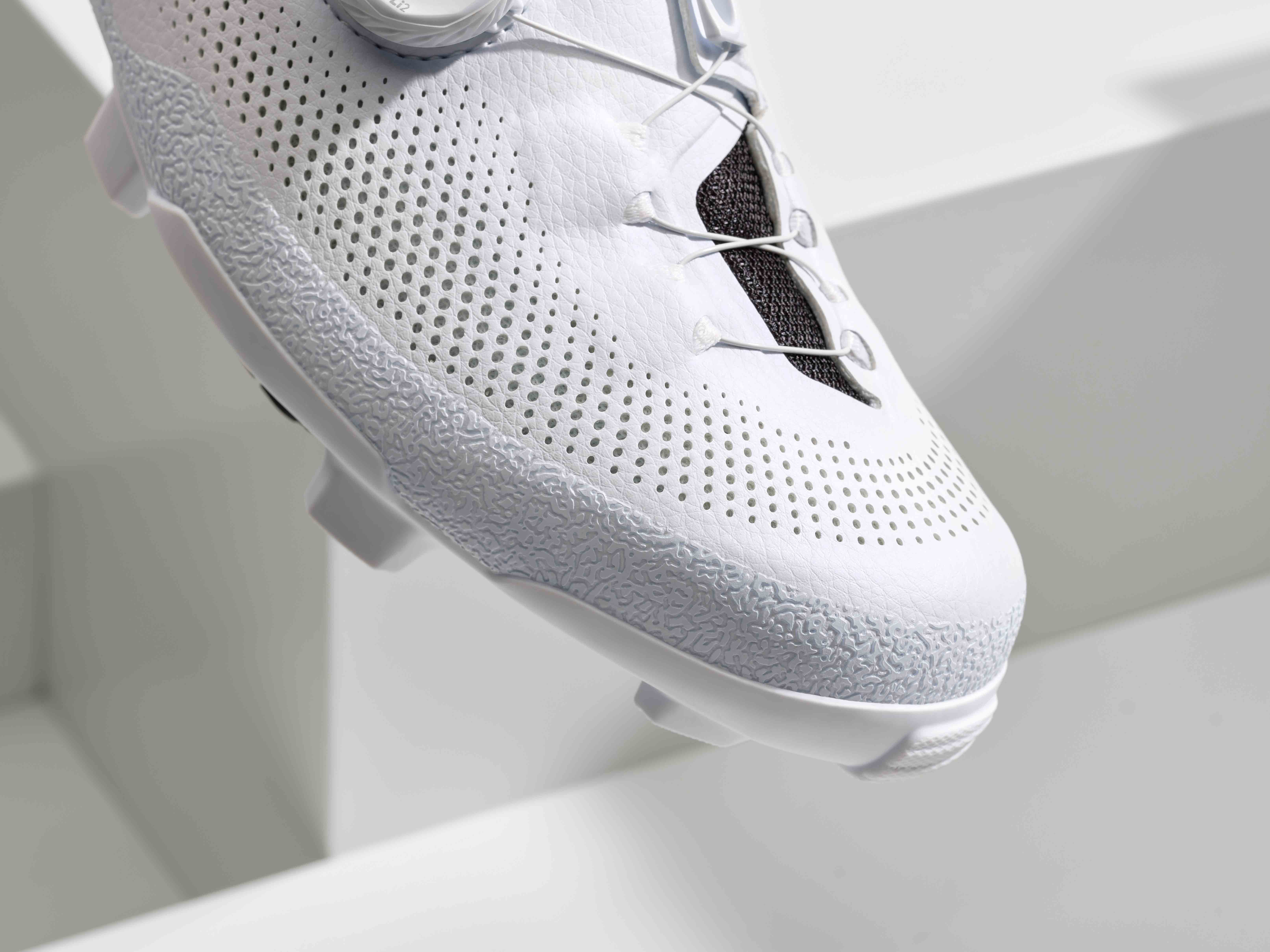 With the new RX910s, instead of the cleat pocket being fixed, Shimano have created the ‘pontoon cleat system’ which they describe as “enabling a road-shoe-like pedalling interface while maintaining SPD compatibility and off-road functionality.” The pontoon system comprises “a pair of modular, replaceable TPU contact blocks that dramatically improve the shoe-to-pedal contact point and optimize power transfer.” The pontoon moves vertically or laterally with the cleat which helps provide “consistent support and efficiency, no matter how your cleats are set up.”