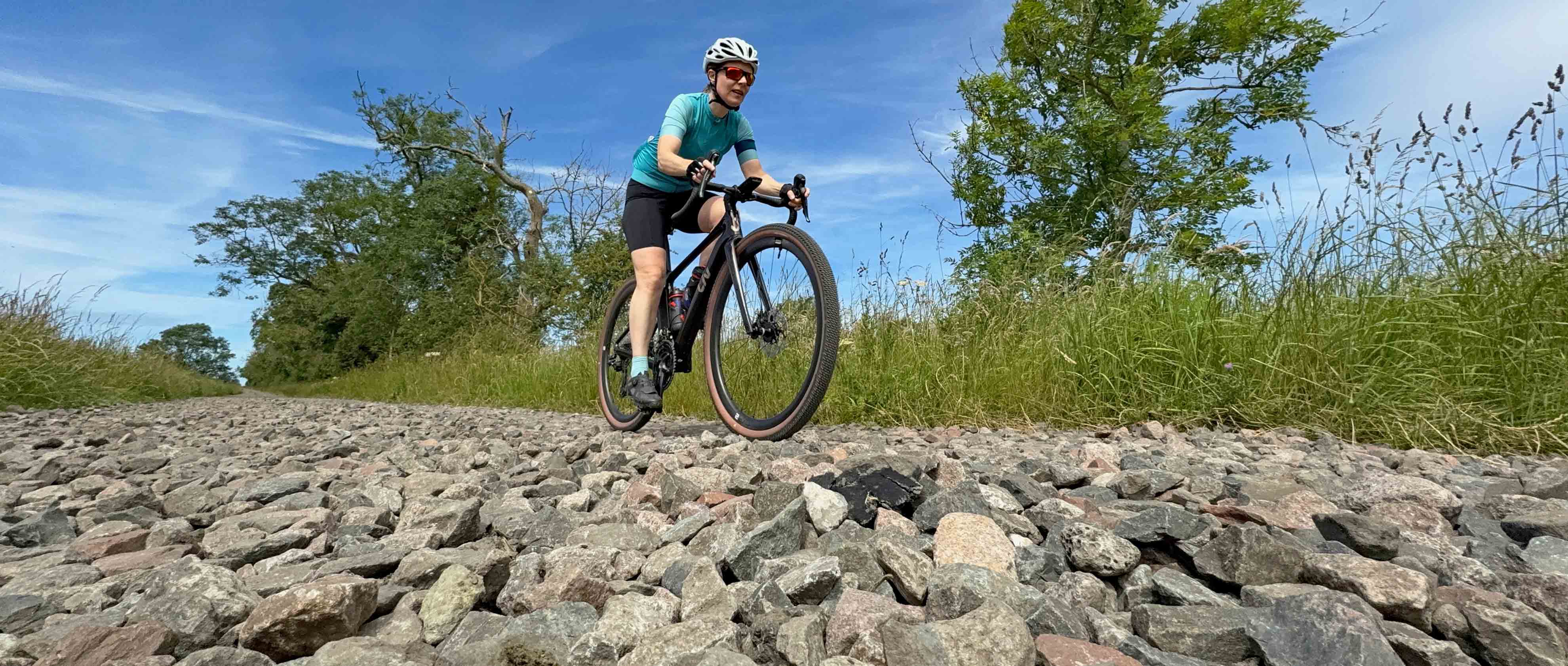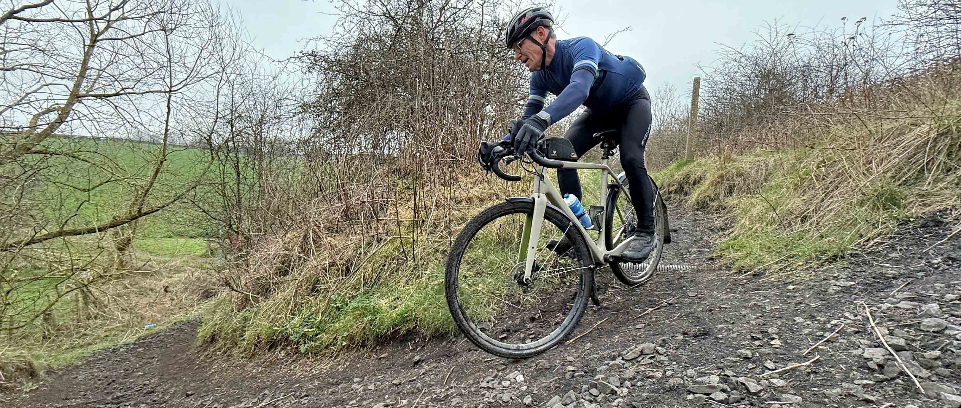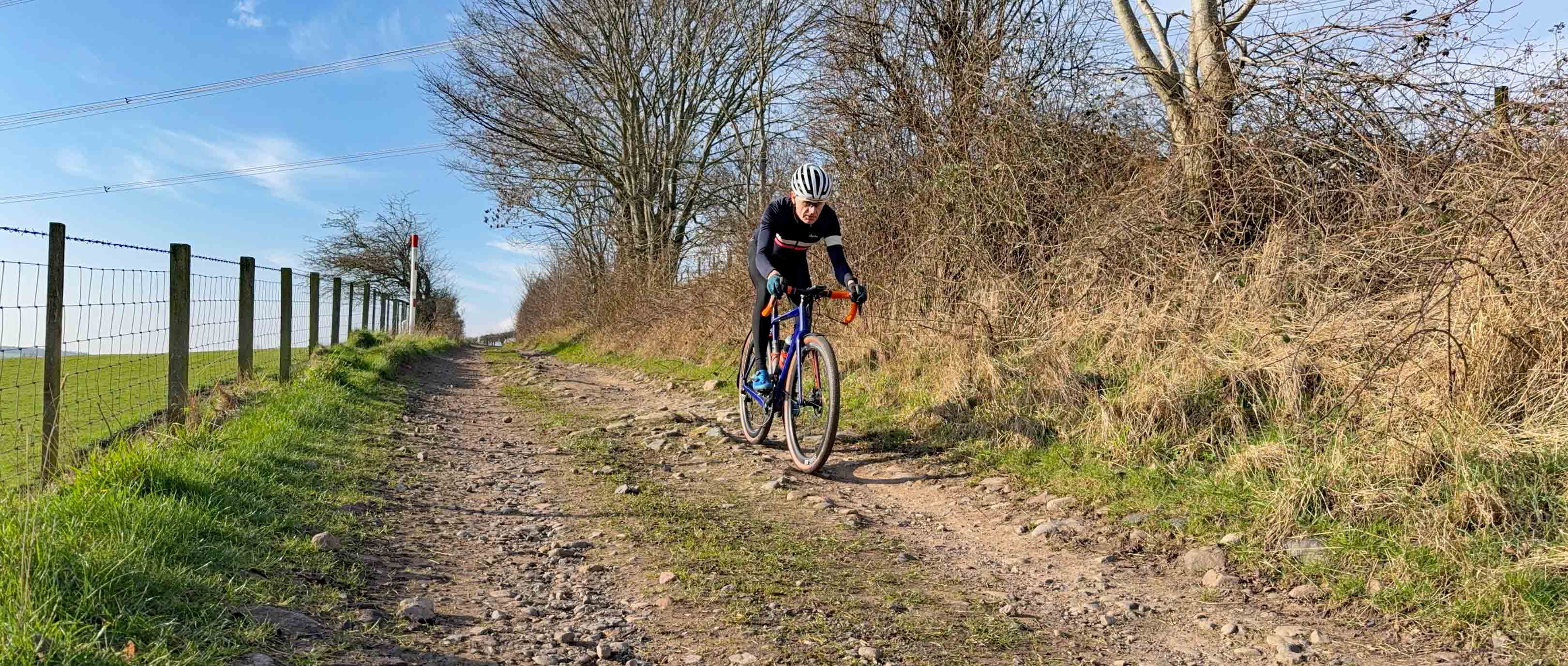 The riding shown in these photos is all within a short distance of Gravel Union Towers and are pretty typical of the kind of surfaces you might encounter on a normal “gravel” ride. Each lump of protruding sandstone bedrock, granite sett or chunk of crushed limestone will send vibrations up through your bike and into your body. If you’ve got the time/inclination, there is some interesting scientific research which looked at precisely what impact (pun intended) vibration had on a group of cyclists. The TL;DR summary was that “vibrations typically imposed in road cycling create varying mechanical stimuli on the entire musculoskeletal system. Muscular activation increased at the lower limb and hand–arm system, but not at the lower back. The demands on the cardiopulmonary and respiratory system increased slightly in the presence of vibration.” There were plenty of caveats in the research, but essentially riding on rough terrain required more muscle power, which needed a higher heart rate/breathing rate and used up more energy. So, if you can reduce the level of vibration reaching the rider, then the demands on the rider’s body are less and so the rider should feel fresher for longer.