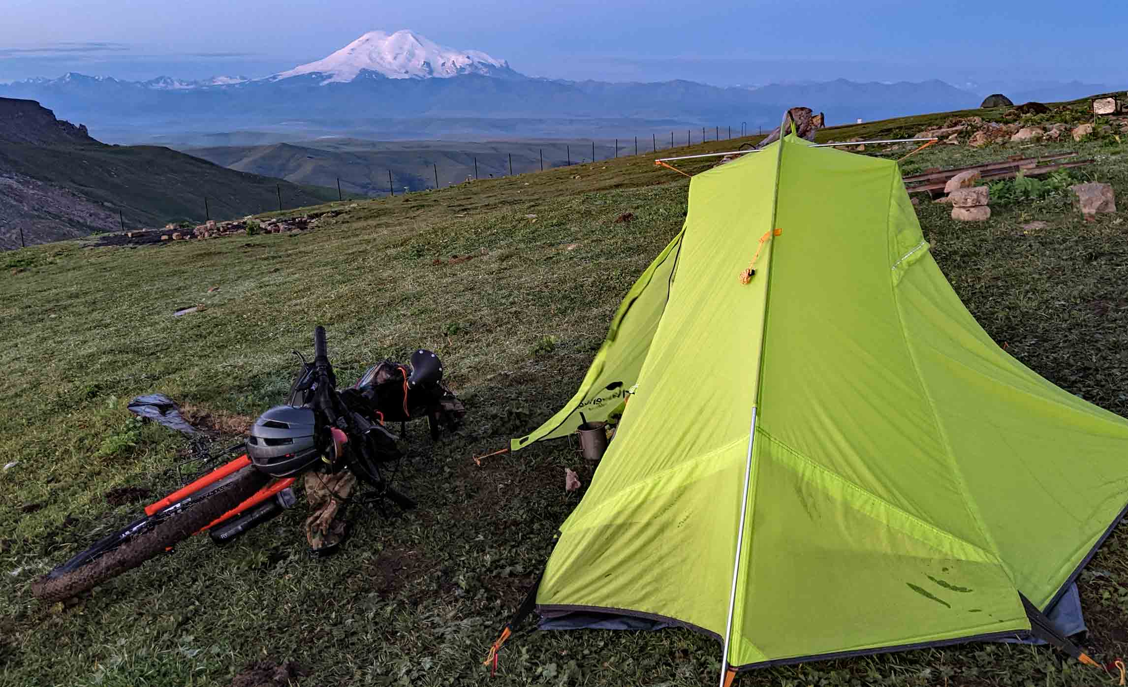 As with my kit, I have a base setup which I then adapt to be warmer/drier/more packable depending on the situation and conditions. My go-to sleeping gear is an Outdoor Research Helium hooped bivvi, a ThermaRest Neo Air sleeping pad, acustom PHD sleeping bag and an inflatable pillow. I find this the best compromise between weight, weather-resistance and comfort. I have definitely used much lighter setups in the past - when I won the TCR in 2015 I had a lightweight bivvi bag, a silk sleeping bag liner and nothing else. However, it takes a certain willingness to suffer to sleep like this, which has somewhat faded over time! My hooped bivvi is only marginally heavier than a normal bivvi bag, but the small tent pole around your head gives you a little more space and comfort plus you don’t wake up with a wet bag stuck to your face. For ultimate comfort, a small tent is much better. For around £300 you can buy a tent that weighs around the 1kg mark. It will be heavier and bulkier, but if the conditions are bad, it will offer more protection—and let’s face it, it is a much more civilised way to sleep than in a sweaty bag.