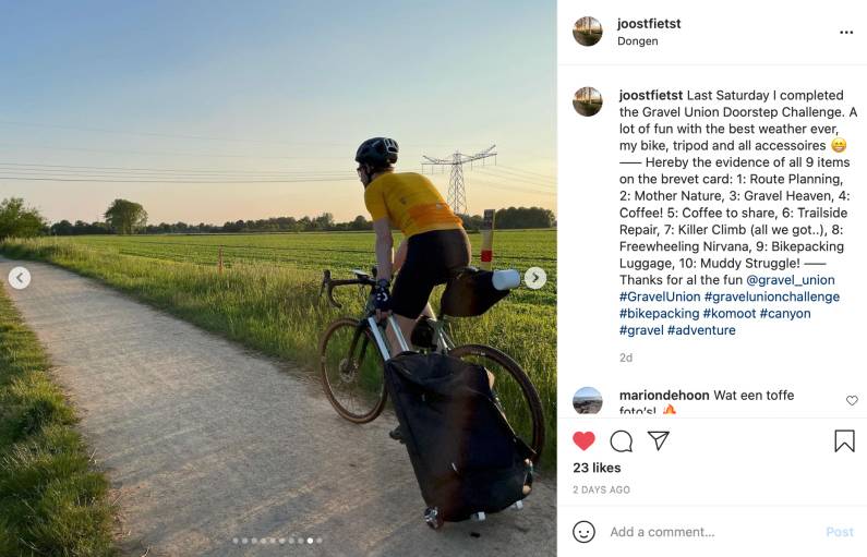 As part of the Doorstep Challenge, we ran a photographic competition, where we awarded spot prizes for creativity, style and humour among other things, to participants who submitted images taken during their ride. You can see all the spot prize winners here. The spot prizes, which were provided by Canyon, komoot and Gravel Union, are on their way to the winners.