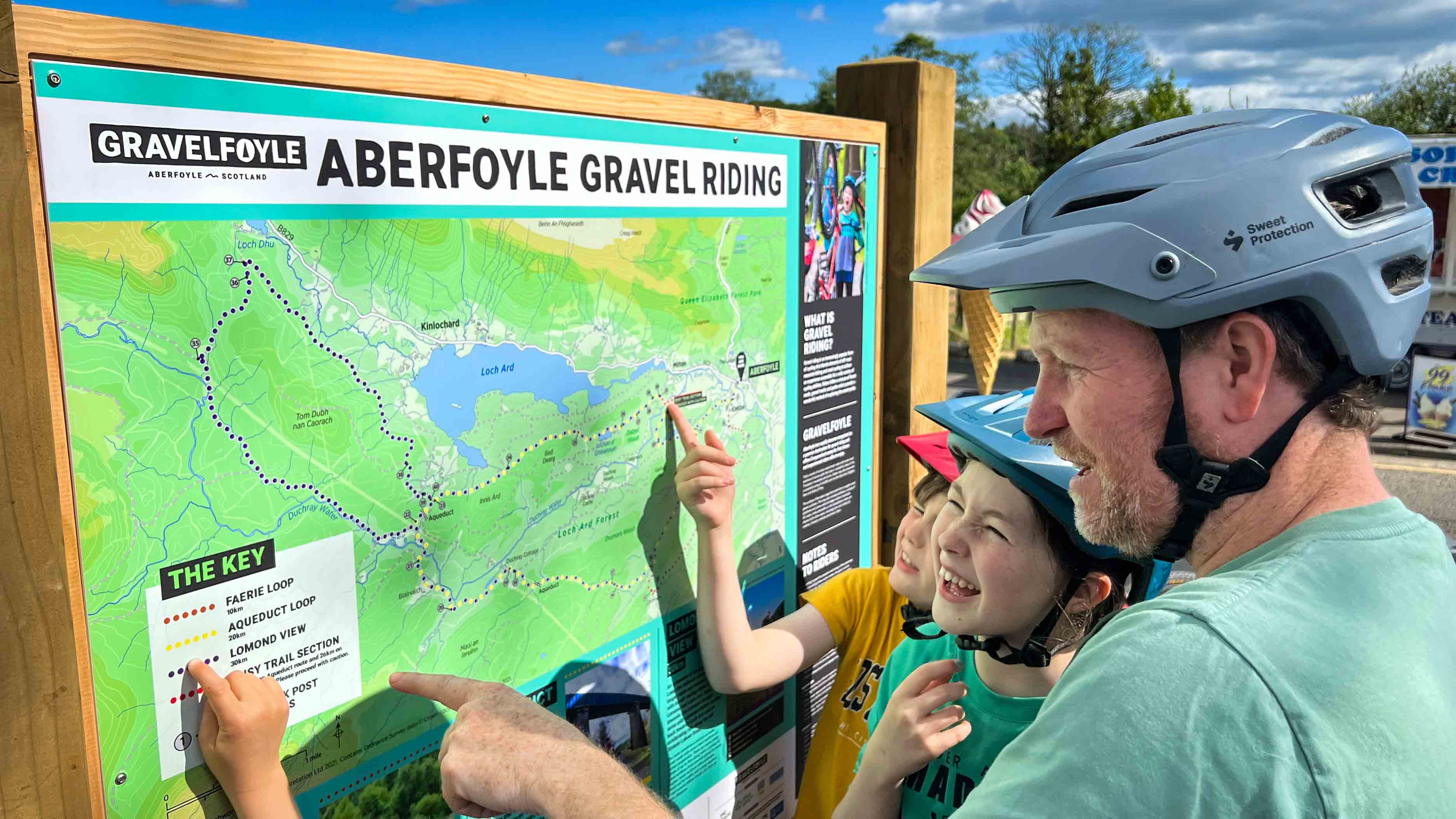 In a world of digital everything, the Gravelfoyle trails have gone both old-skool and new-skool with their trail network and you can download GPX files of the routes but they also have large printed route maps at the trailhead, which are brilliant for literally seeing a bigger picture and in particular for family rides in the area, as kids seem to always love knowing what they’re going to be doing/seeing/riding.