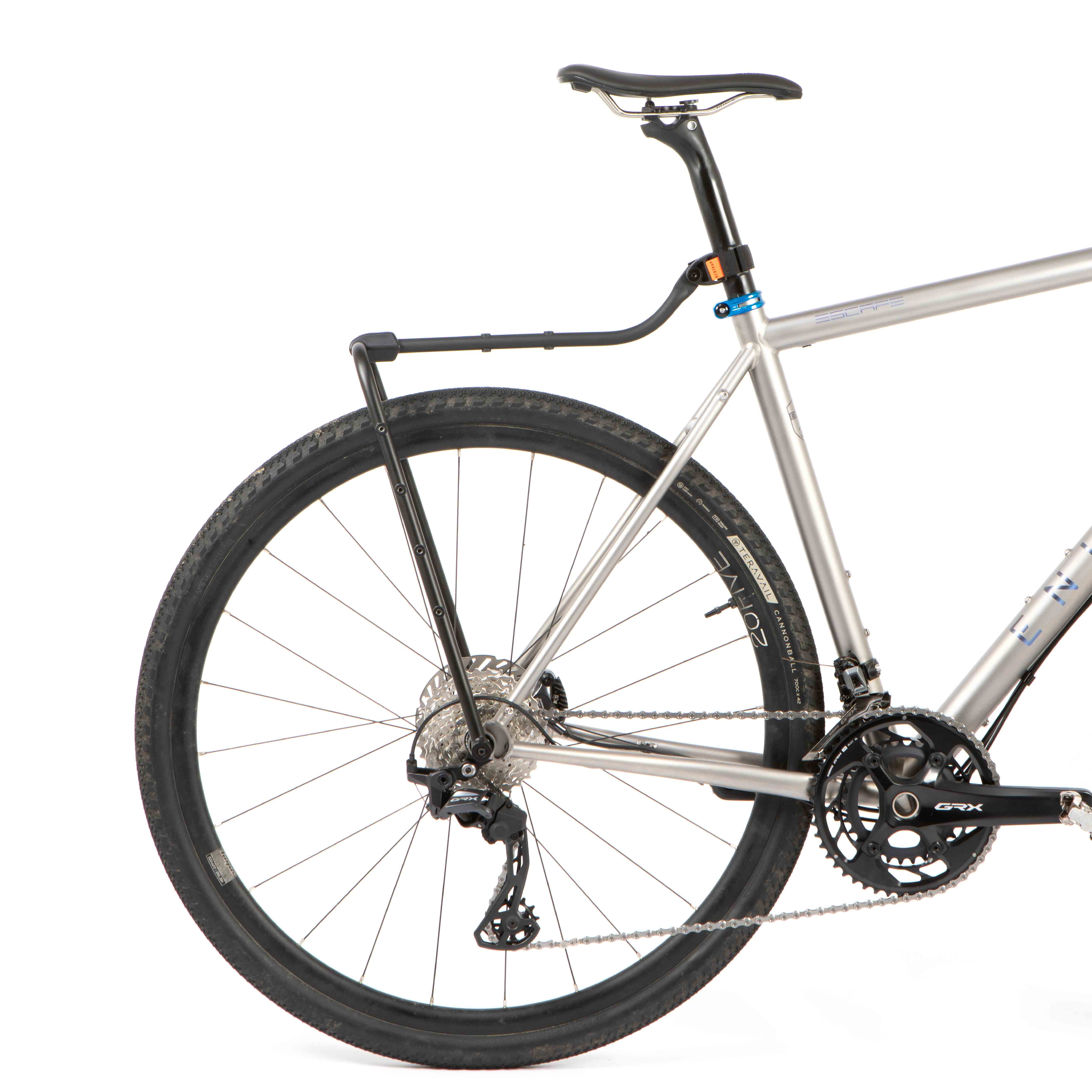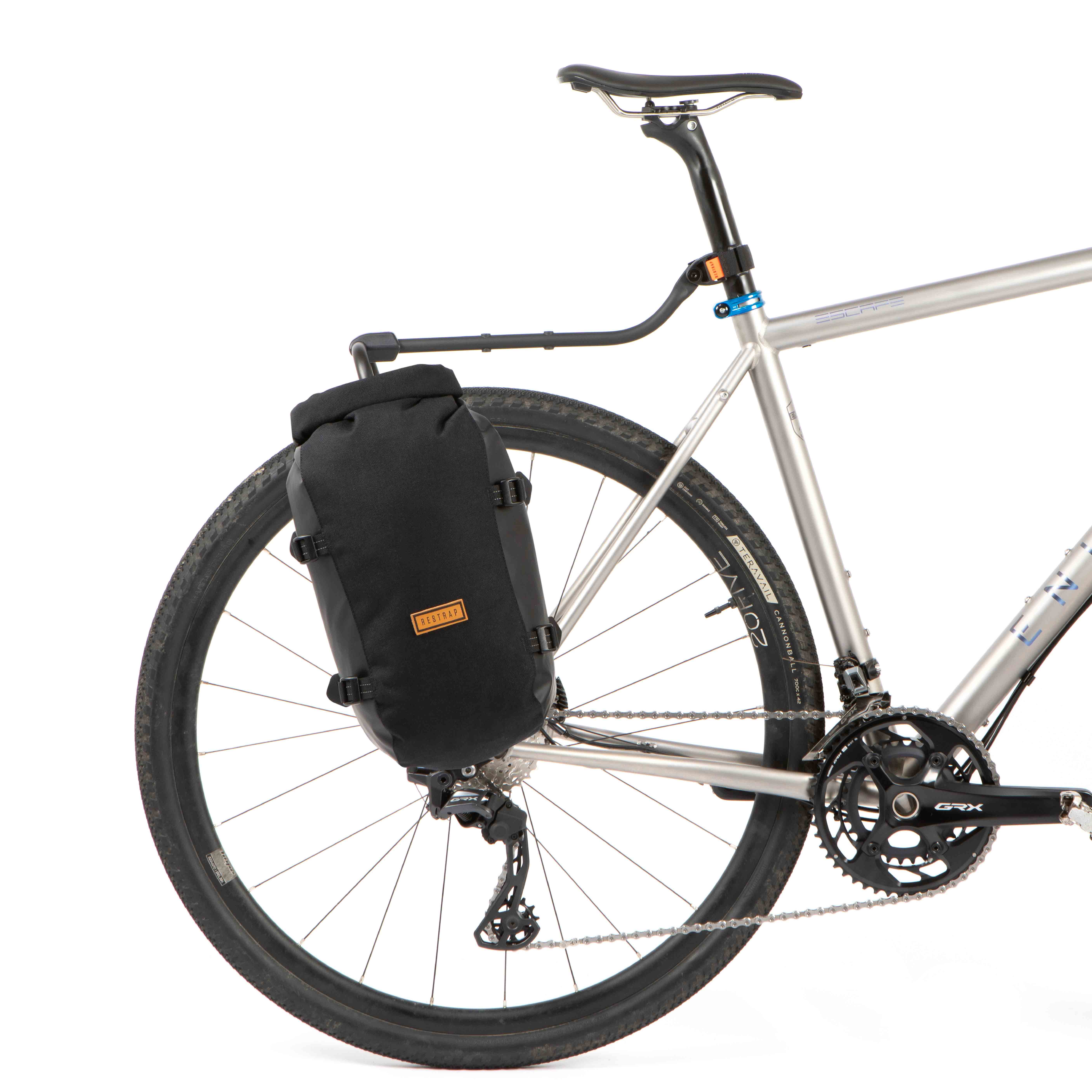 - 64mm spaced bolting on the rack legs for cages, Restrap Switch Panniers or any other compatible accessories