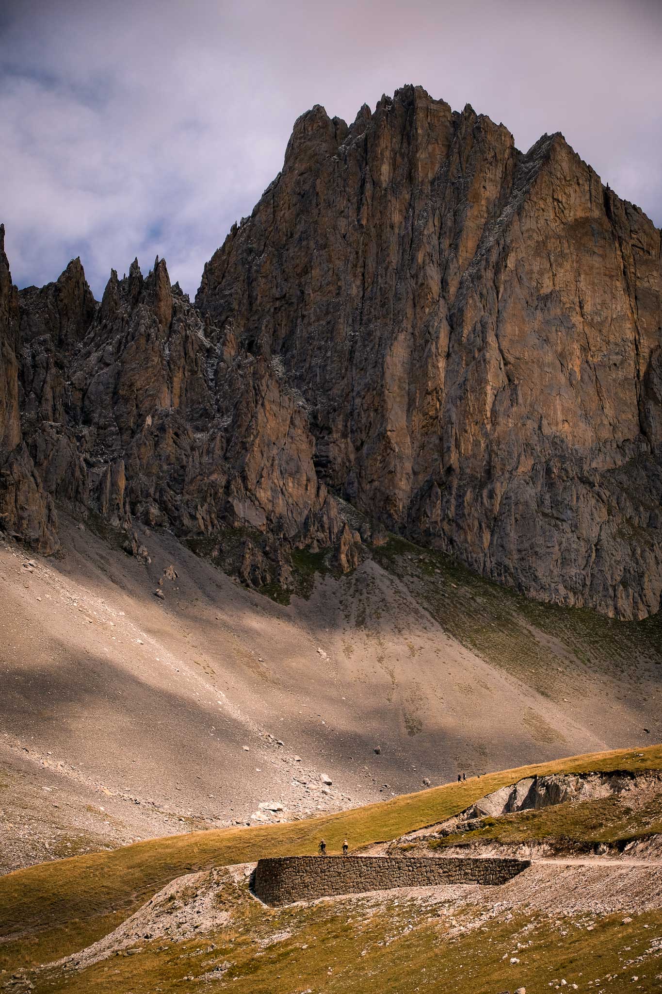 After a break for coffee in Sestriere, they tackled the iconic Strada dell'Assietta, a dusty alpine gravel road above 2,000 meters that winds through some of the most awe-inspiring vistas in the region. Clear skies made the views even more unforgettable - a high point, both literally and figuratively, of the pilgrimage. Following the descent of the Colle delle Finestre, some pilgrims spent the night in a hotel in Susa, while others bivouacked in the forests at the base of the next day’s climb to Caserma Grotte del Seguret, at over 2,200 meters.