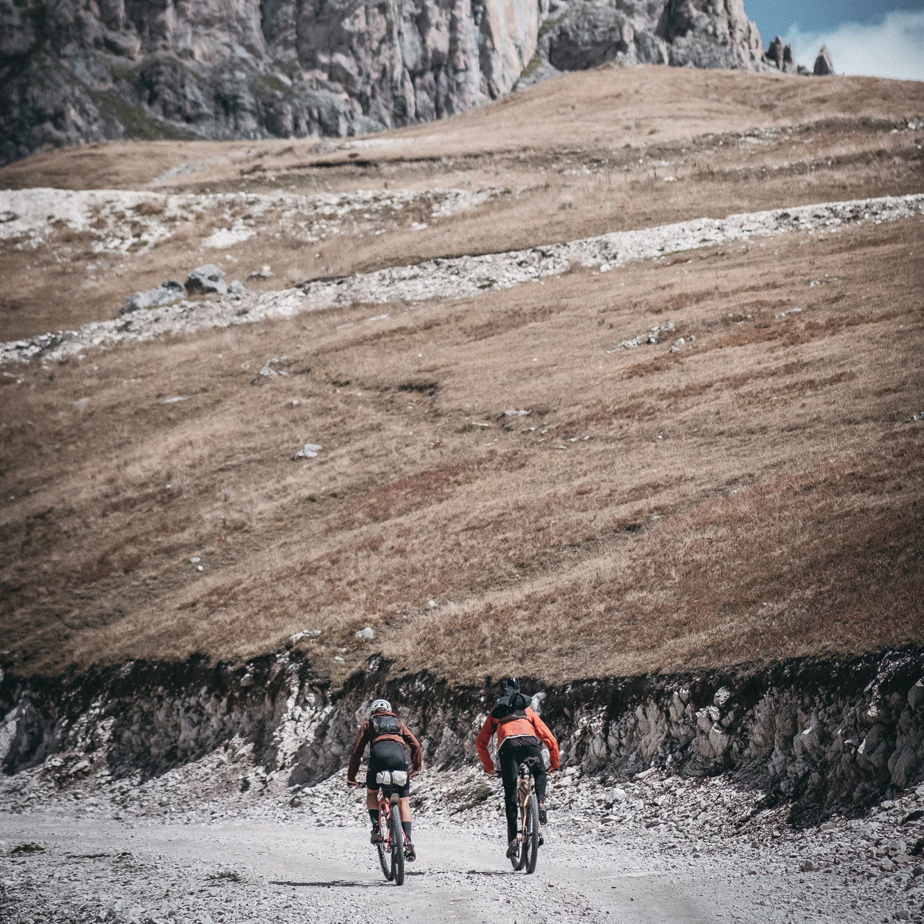 Le Pilgrimage is about making your own choices and knowing your own limits. Riders know beforehand what they sign up for: they are asked to confirm their mountain experience, endurance and ability to ride self-supported through high and rough terrain. Competency checks ensure that every participant recognises the demands: the skill to navigate in the mountains carrying your own supplies, the endurance to cover multiple days of 100 km and 3,000 metres of elevation, and the familiarity with rugged, high-altitude terrain and unpredictable weather. Yet even with preparation, every pilgrim must still make their own decisions along the way.