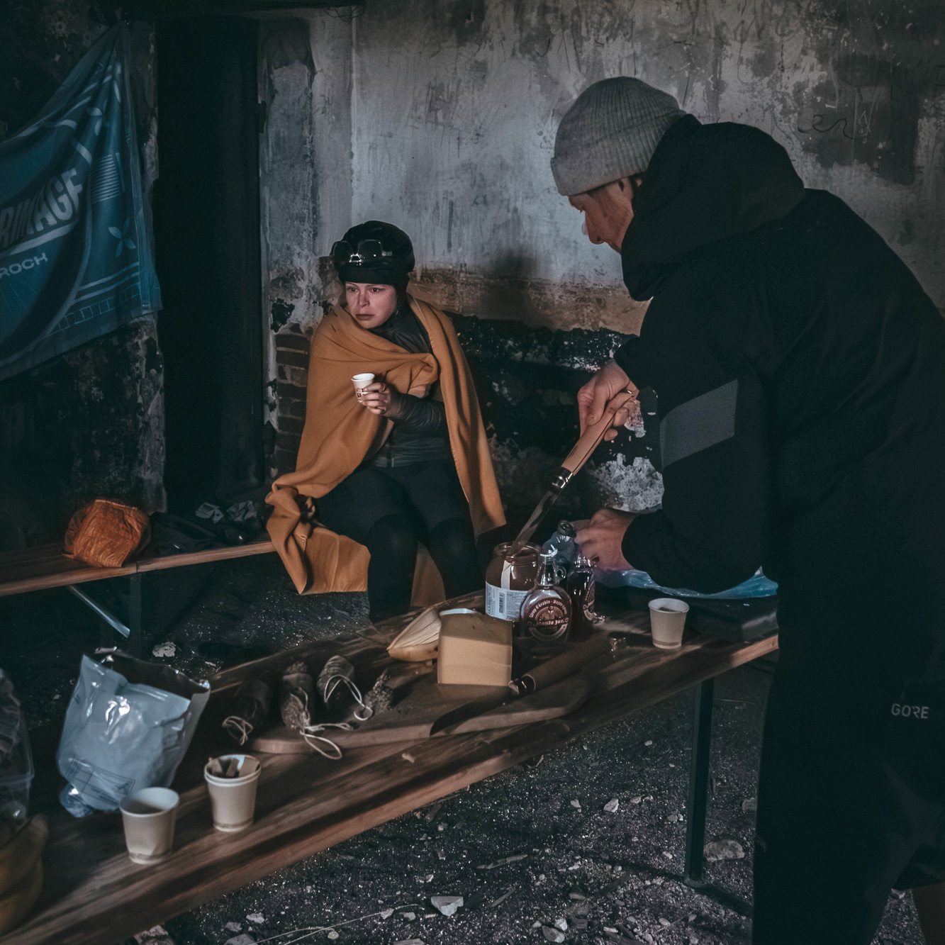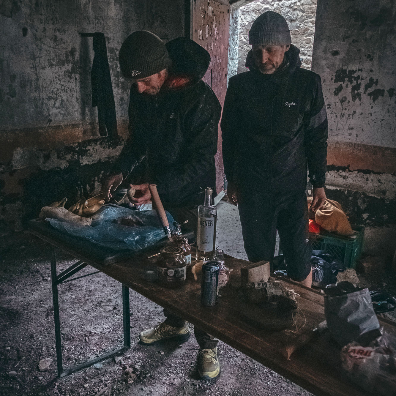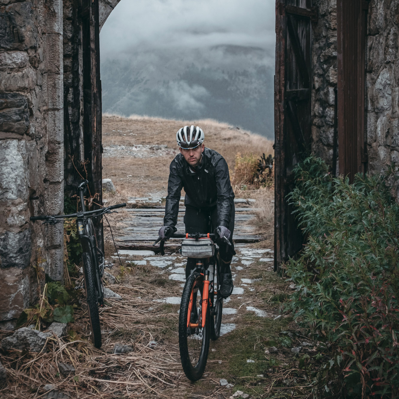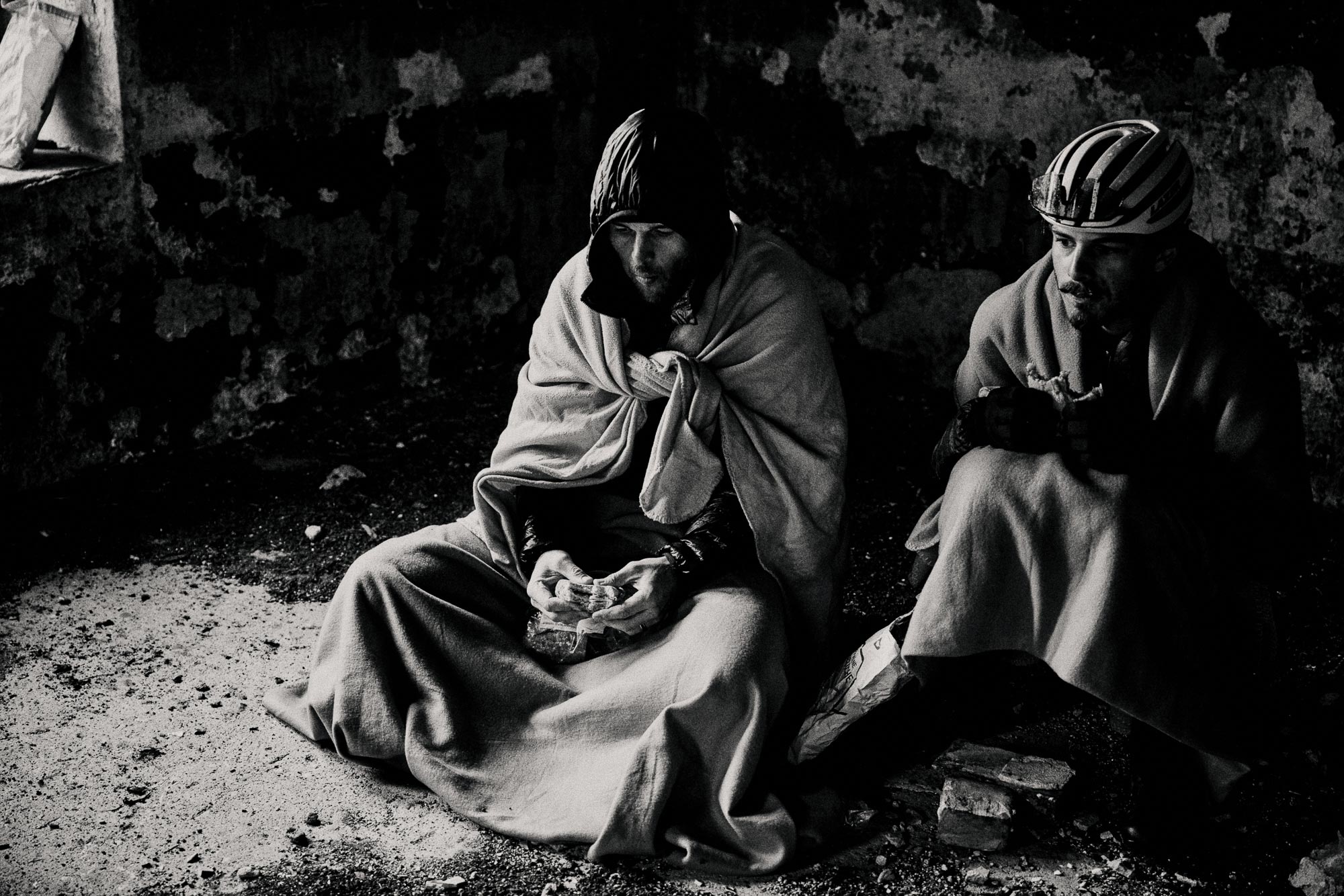While cold and wet pilgrims huddled in fleece blankets around a small fire in the abandoned Fort de l’Olive, organisers Simon and Cyril looked at each other with a fleeting reflection: had we pushed them too far? These were the fastest riders. If even they arrived trembling and soaked, what about those still out on the mountain?