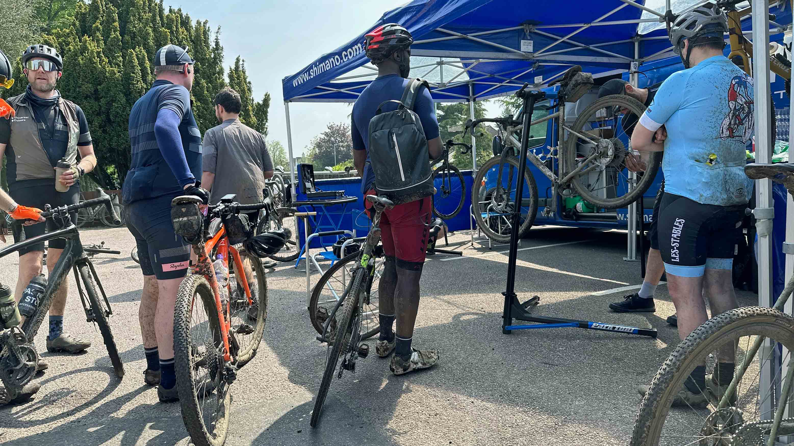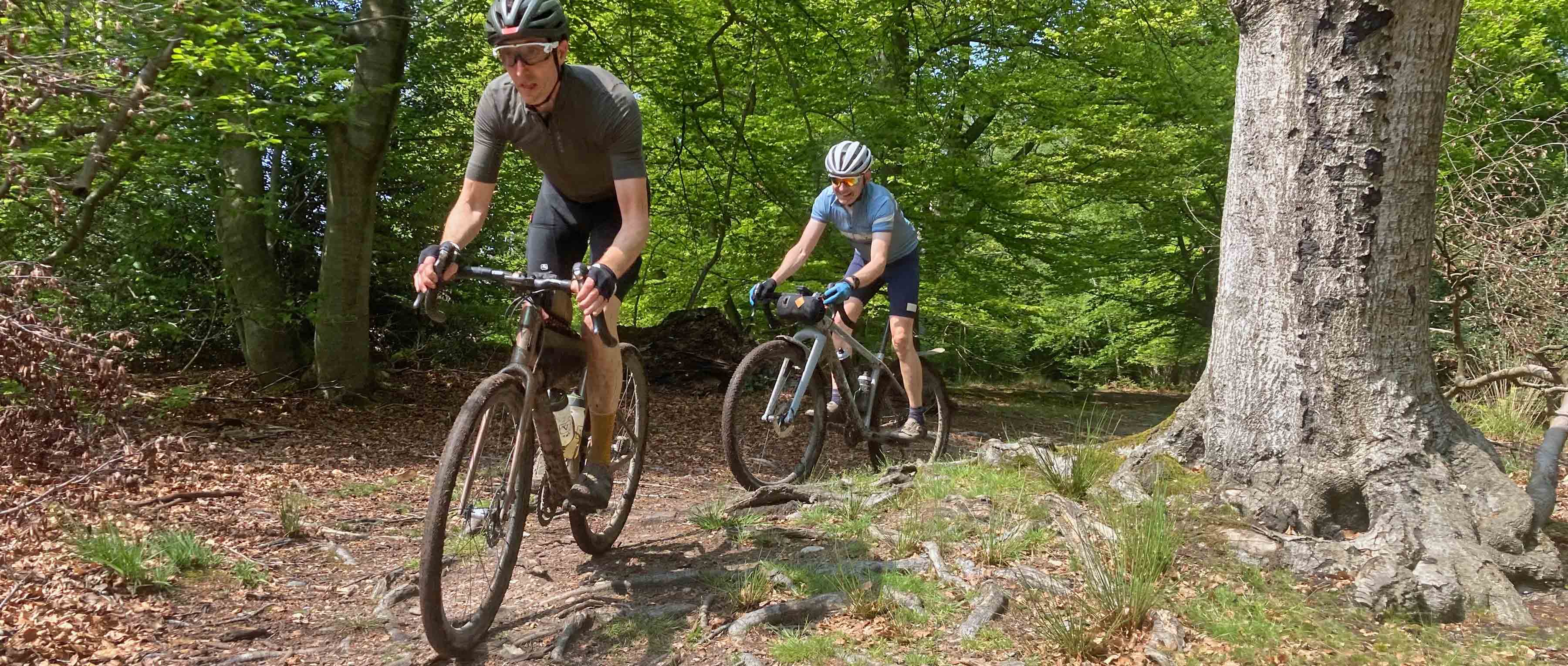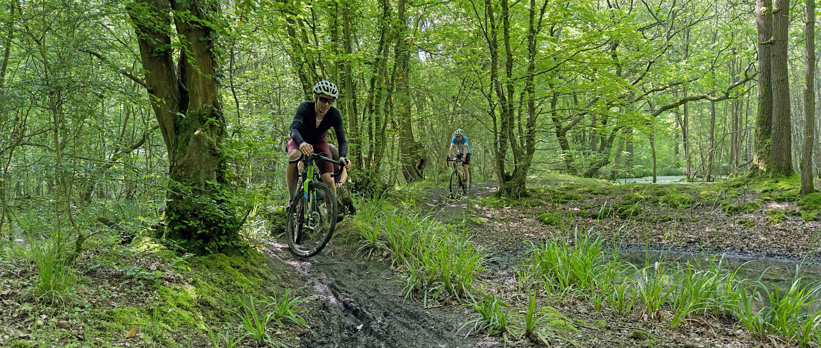 “Do you think I’m just jinxed with tubeless tyres?” asked Ian with a combination of disappointment and frustration apparent in his voice. We were deep in the middle of Hoddesdon Park Wood, a beautiful broadleaf forest with a vehicle-width gravel trail running through the centre of it. The dense foliage meant there were some patches where the sunlight hadn’t penetrated and the clayey soil, high water table and popularity of horse riding in the area meant some of the trails were impressively ‘clarty’. As we stopped to try and encourage (unsuccessfully) the air to stay inside Ian’s rear tyre, we were part way up a short, slithery climb. We had just descended at high speed, with a mix of bravado and foolhardiness known only to mountain bike riders transplanted onto gravel bikes for a day. With enough speed (and a large dollop of good luck) it was possible to carve a route straight through the middle of the worst of the mud, but the high-pitched giggles and occasional yelps that were being carried through the forest behind us, made us realise that although not everyone was as successful as we had been at navigating the swampy descent, they all sounded like they were having a fun time anyway.