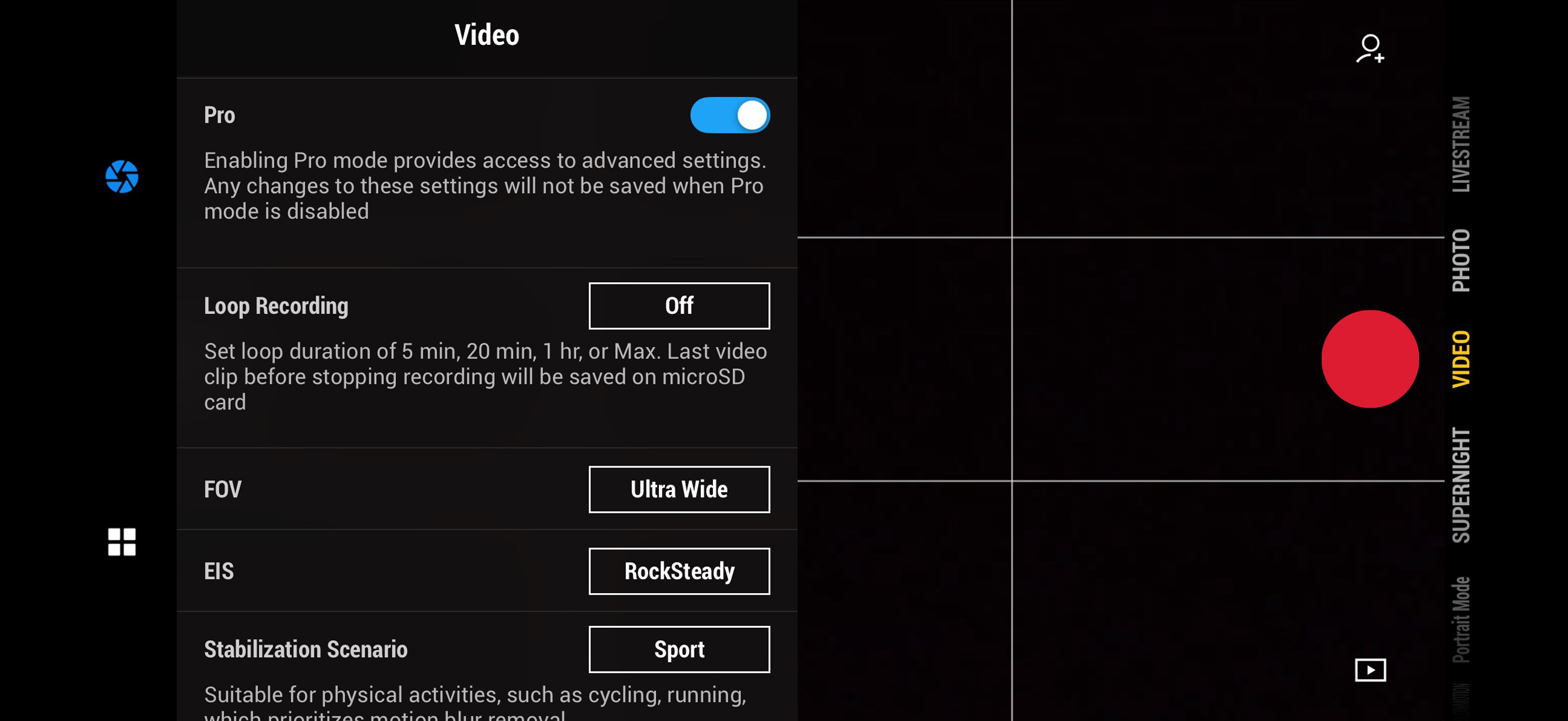 - Pro mode - On