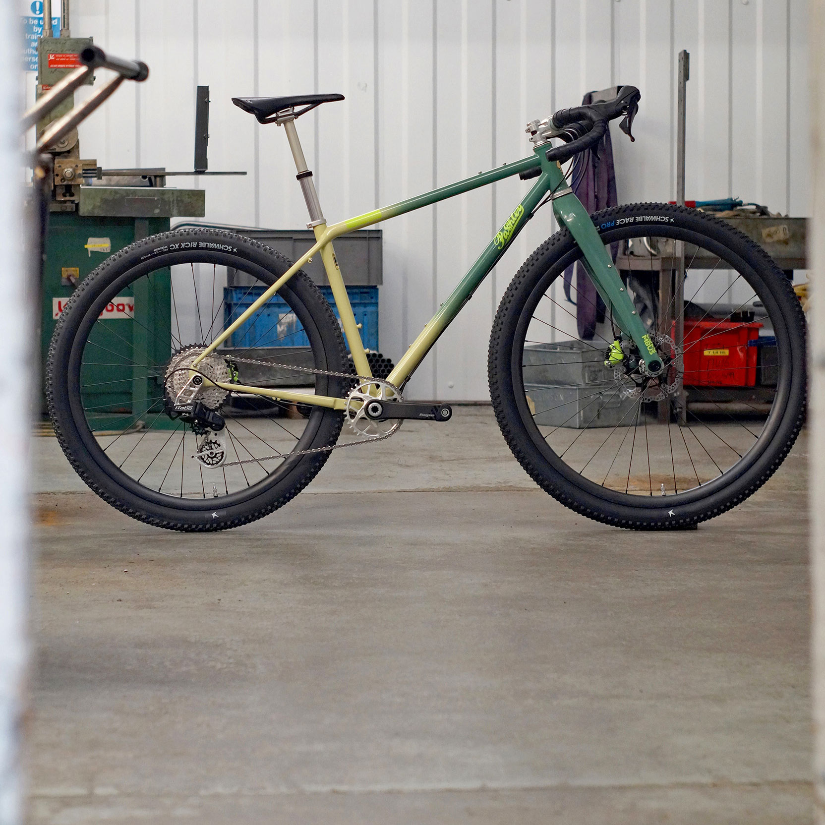 Pashley describe the Wildfinder Mullet as “a test bed to assess the potential benefits of the new wheel size, allowing informed decisions on the design direction of future models.” Pashley go on to say that “The focus of the bike is all-out Gravel speed and off-road agility.” When asked about the logic for creating a mullet, rather than a full 32” wheeled bike, they say “The Wildfinder Mullet combines the rollover, inertia and comfort of a 32” paired with a 29” out back and its accompanying short snappy chainstays.”